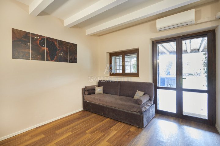 Il vero punto di forza è l’ampio patio esterno privato, una veranda dove potersi rilassare su comode sdraio, fare colazione all’aperto o cenare nelle serate estive in totale tranquillità. A disposizione degli ospiti anche una grande piscina condominiale immersa nel verde e un curato giardino, perfetti per rinfrescarsi e godersi momenti di relax durante le giornate più calde.